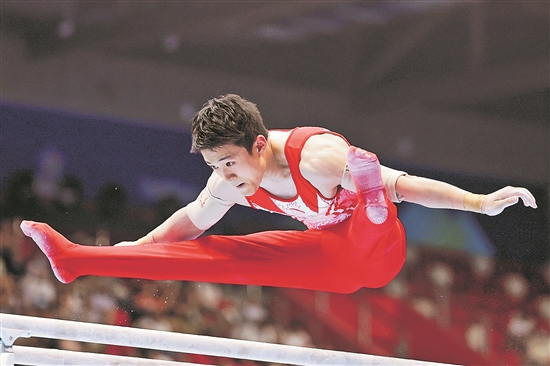 侍聰在雙杠比賽中。新華社記者 許雅楠 攝