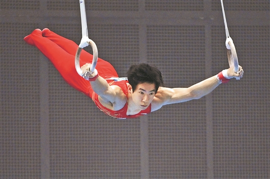 張博恒在吊環(huán)比賽中。新華社記者 黃孝邦 攝