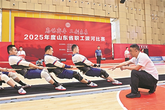 近日,為期三天的“惠暢齊魯 工創(chuàng)未來”2025年度山東省職工拔河比賽在德州市圓滿落下帷幕。本次比賽由山東省總工會、省體育局、省體育總會主辦,德州市總工會、德州市體育局承辦,吸引了來自全省各地市、產(chǎn)業(yè)工會及部分大企業(yè)工會的33支參賽代表隊(duì),600余名職工運(yùn)動員參賽。經(jīng)過激烈角逐,山東鋼鐵集團(tuán)男子組代表隊(duì)獲得男子組640公斤級拔河比賽冠軍,山東港口集團(tuán)女子組代表隊(duì)獲得女子組540公斤級冠軍。圖為參賽選手在比賽中。