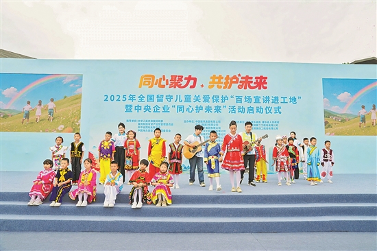 當(dāng)日,由中建集團(tuán)等9家央企主辦的2025年全國留守兒童關(guān)愛保護(hù)“百場宣講進(jìn)工地”暨中央企業(yè)“同心護(hù)未來”活動在甘肅康樂啟動。來自多家建筑企業(yè)的46名愛心媽媽與100名留守兒童結(jié)對,共同為留守兒童健康成長創(chuàng)造良好環(huán)境。本報通訊員 周雙雙 攝