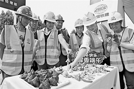 5月20日,端午佳節(jié)臨近,中鐵城建集團(tuán)長沙大王山南片保障性住房三期項(xiàng)目為工友們包粽子、縫制驅(qū)蚊香囊,工友們?cè)诨顒?dòng)現(xiàn)場開心地挑選心儀的香囊,品嘗不同口味的粽子。目前,該項(xiàng)目正在全力推進(jìn)主體結(jié)構(gòu)施工,建成后將供應(yīng)1326套保障性住房。本報(bào)通訊員 杜進(jìn)才 攝