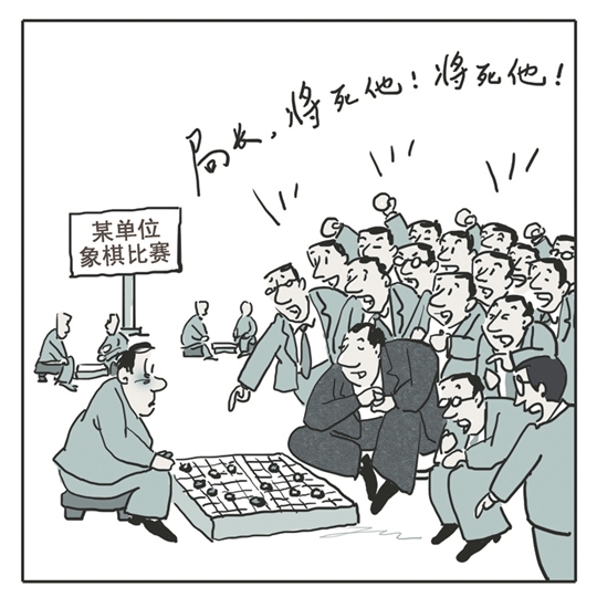 廣大圍觀群眾不干了。趙局近7年在同等賽事從未失手,即便7年前也是輸給他的老上級。這不正常???這太奇怪了!老錢瘋了嗎?有人對老錢表達(dá)憤怒,有人替他感到羞恥,更多的人主動(dòng)自覺地?cái)y起手,為趙局助力加油,瞬間“凝聚”起巨大的合力。更加令人失望的是,此時(shí)的老錢,臉上竟寫滿了困惑,全然不知自己破壞了“規(guī)矩”,污染了“風(fēng)氣”,搞亂了“大局”。
