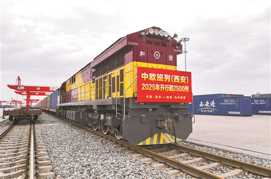 2025年5月22日,滿載著汽車、機(jī)械配件、家用電器等貨物的X8489次中歐班列準(zhǔn)備開往德國杜伊斯堡,標(biāo)志著中歐班列(西安)今年以來開行超2500列。