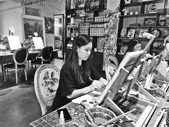 在曾貴福的油畫體驗(yàn)館里,顧客可以從零開始創(chuàng)作屬于自己的作品。本報(bào)記者 劉友婷 攝