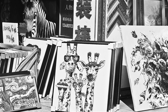 在大芬村,隨處可見擺放在店鋪門前待售賣的油畫作品。本報(bào)記者 劉友婷 攝