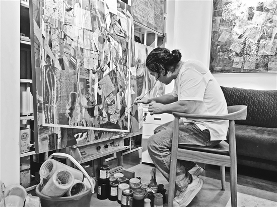 在TNT國(guó)際藝術(shù)空間的工作室里,曾慶進(jìn)正專注創(chuàng)作。本報(bào)記者 劉友婷 攝