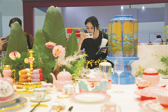 圖為參觀者在景德鎮(zhèn)瓷博會上拍攝精美陶瓷。新華社記者 周密 攝