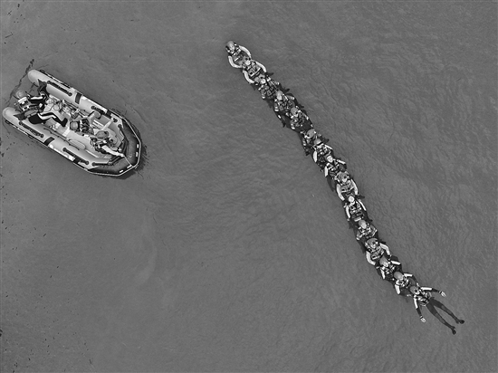 近日,消防救援人員在岷江成都段進(jìn)行團(tuán)隊(duì)漂流演練(無(wú)人機(jī)照片)。
