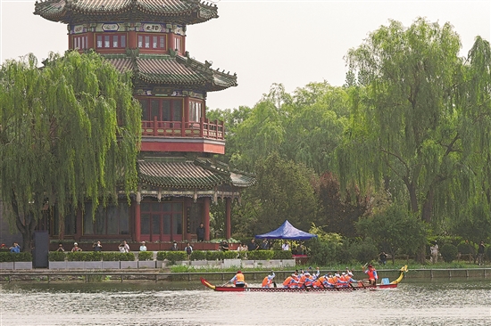 5月29日,2025中國(guó)大運(yùn)河文化帶京杭對(duì)話配套活動(dòng)“河之端”龍舟賽在北京市西城區(qū)什剎海進(jìn)行,杭州市龍舟隊(duì)在比賽中。當(dāng)日,2025中國(guó)大運(yùn)河文化帶京杭對(duì)話在北京大運(yùn)河博物館開幕。活動(dòng)以“千帆競(jìng)發(fā) 運(yùn)河通濟(jì)”為主題,從不同角度展示大運(yùn)河沿岸城市的文化風(fēng)情、科技創(chuàng)新及城市風(fēng)貌。 新華社記者 鞠煥宗 攝
