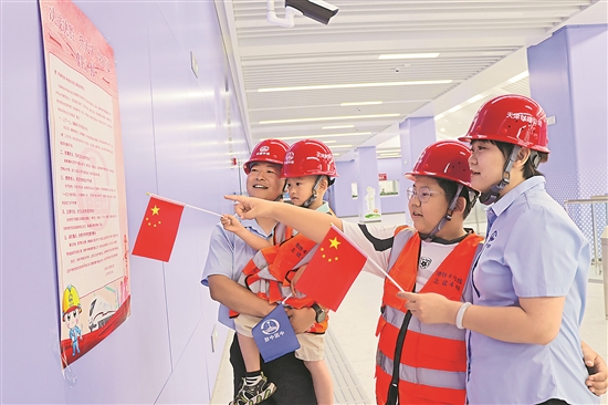 5月31日,中鐵六局天津公司天津地鐵4號線項(xiàng)目部邀請建設(shè)者的子女來到工地,參加項(xiàng)目部舉辦的“小候鳥”工地過“六一”活動,體驗(yàn)工程建設(shè)者的一天。圖為項(xiàng)目部職工帶著“小候鳥”參觀現(xiàn)場。