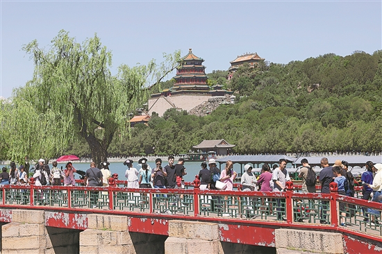 6月2日,北京,游客在頤和園景區(qū)賞景游玩。端午小長假期間,人們紛紛走出家門,在豐富多彩的活動中樂享假期。本報記者 王偉偉 攝