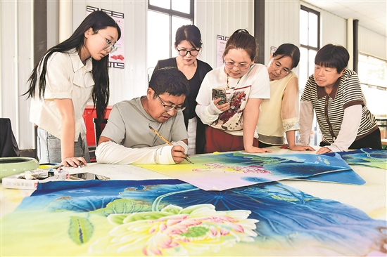 近年來,“中國工筆畫之鄉(xiāng)”山東省菏澤市巨野縣積極發(fā)展鄉(xiāng)村文化創(chuàng)意產(chǎn)業(yè),設(shè)立專項資金扶持書畫創(chuàng)作,并開展農(nóng)民畫師免費培育工程。目前,巨野縣有8個繪畫專業(yè)鎮(zhèn)、50個繪畫專業(yè)村、65家基層畫院,工筆畫已成為當?shù)剜l(xiāng)村振興的新引擎。
