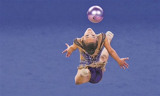 遼寧金滿星隊(duì)選手謝紫萱在青年個(gè)人球操資格賽中。新華社記者 陳誠 攝