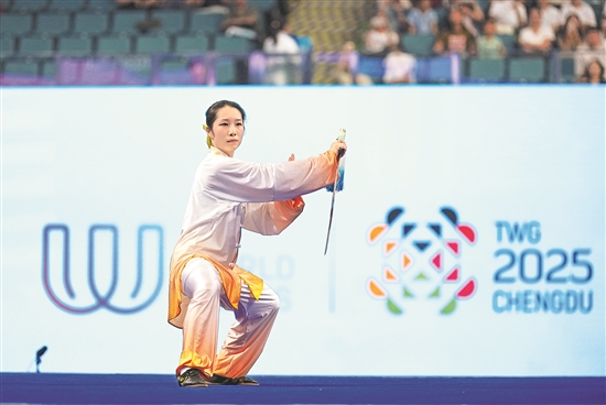 當(dāng)日,在成都高新體育中心綜合館內(nèi)舉行的成都世運(yùn)會武術(shù)項目女子太極拳-太極劍決賽中,中國隊選手盧卓靈以總分19.522優(yōu)異成績奪得冠軍。這是中國體育代表團(tuán)在成都世運(yùn)會上的首枚金牌。