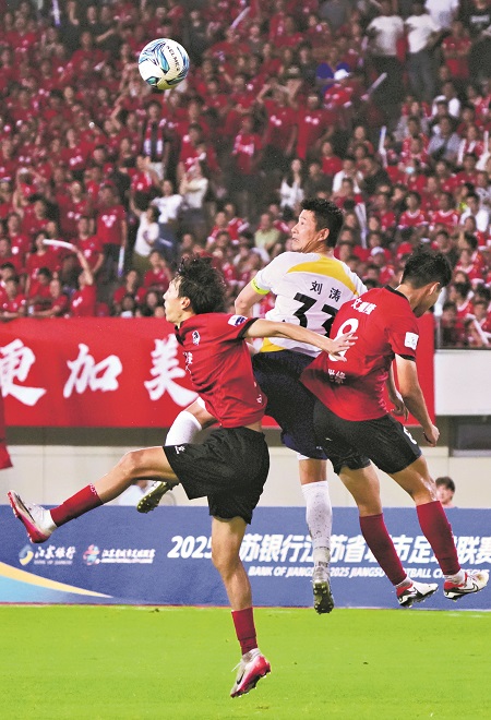 2025年,江蘇省城市足球聯(lián)賽無疑已成為中國最火爆的業(yè)余足球賽事,8輪48場比賽累計觀眾突破110萬人次。賽事依托江蘇“十三太?!钡牡赜蚬N幕l(fā)全網(wǎng)狂歡?!百愂?旅游”深度融合帶動文旅經(jīng)濟爆發(fā)?!安莞鼻騿T的場外故事,更讓賽事充滿人情味與勵志色彩。