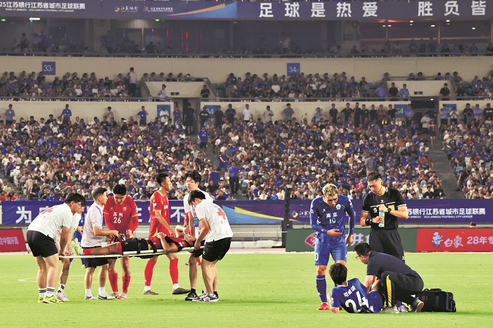 7月5日,南京奧體中心,“蘇超”第六輪南京對陣蘇州,雙方激烈交鋒。