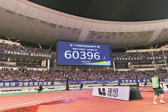 7月5日,南京奧體中心,“蘇超”第六輪比賽現(xiàn)場觀眾達60396人,刷新了國內(nèi)業(yè)余足球賽事上座紀錄。