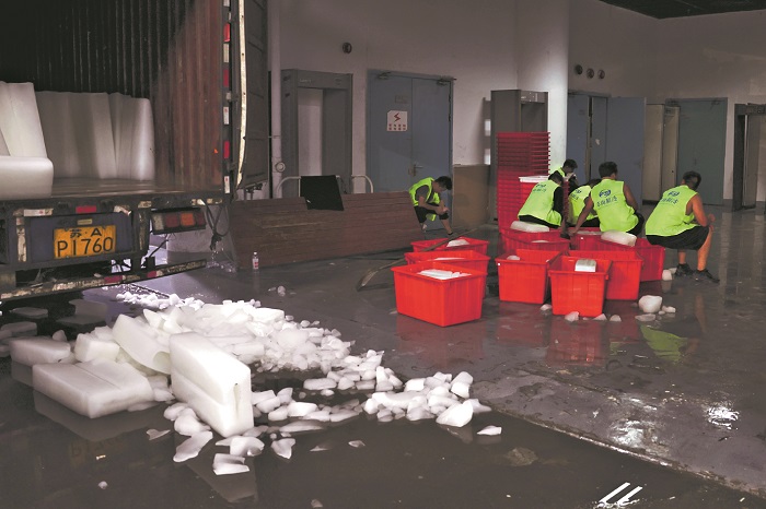 7月5日,南京奧體中心,由于天氣炎熱,主辦方準備了1萬余塊冰塊用于降溫。