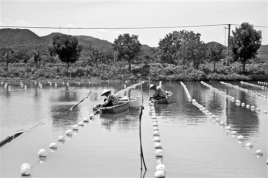 8月9日,工作人員在浙江省諸暨市山下湖鎮(zhèn)的珍珠智能化養(yǎng)殖基地放蚌。