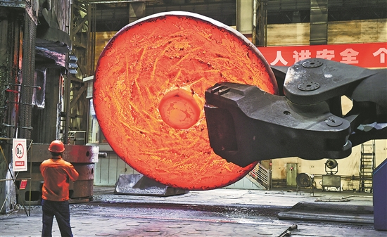 7月25日,在中信重工鍛壓車間內(nèi),鍛壓班組的工人們正在鍛壓一批直徑超6米的超大型高端鑄鍛件產(chǎn)品。近日,面對產(chǎn)品訂單持續(xù)增長及高溫天氣,班組員工采取合理調(diào)整班次,增加高溫保障頻次等方式,確保訂單保質(zhì)保量完成。黃政偉 攝