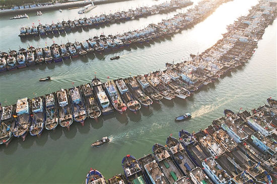 防抗臺風(fēng)“楊柳” 漁船進(jìn)港避風(fēng)