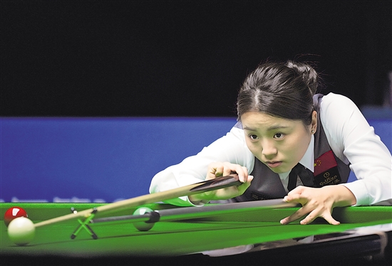 白雨露在女子斯諾克6紅球比賽中。新華社記者 胥冰潔 攝