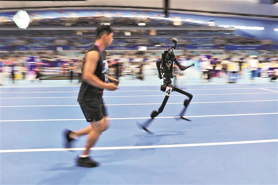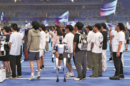 8月13日,人形機(jī)器人足球5V5預(yù)選賽在國(guó)家速滑館“熊貓眼”舉行?!靶茇堁邸蔽挥凇氨z帶”西廣場(chǎng)下沉庭院,是全球首個(gè)人形機(jī)器人賽訓(xùn)基地,也是本次運(yùn)動(dòng)會(huì)的重要基礎(chǔ)設(shè)施。