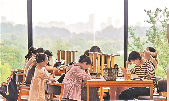 8月15日,市民在北京市通州區(qū)大運(yùn)河沿岸的北京城市圖書館閱讀。近年來(lái),北京市采取一系列舉措,改善了大運(yùn)河水域生態(tài)環(huán)境,綠化覆蓋率提升至80%。新華社記者 李欣 攝