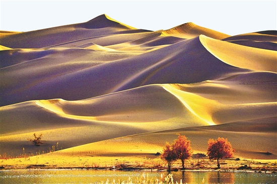 近日,地處新疆維吾爾自治區(qū)巴音郭楞蒙古自治州尉犁縣的沙漠胡楊景區(qū),好似金黃色的油畫世界。本報(bào)通訊員 王遠(yuǎn)來 攝