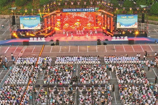 8月16日晚,重慶市萬盛經(jīng)開區(qū)萬盛旅游度假區(qū),精彩的“夏季村晚”文旅活動(dòng)吸引了不少游客來此觀看演出、選購(gòu)特產(chǎn)、消夏避暑。