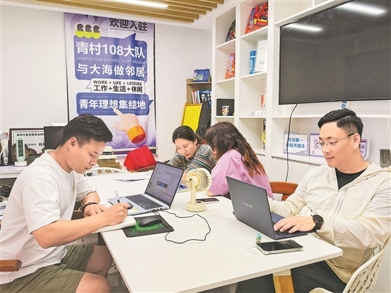 6月25日,在浙江省溫州市洞頭區(qū)東屏街道東岙村,一群創(chuàng)業(yè)青年在“青村108大隊”海創(chuàng)空間內(nèi)工作。近年來,浙江持續(xù)完善青年就業(yè)創(chuàng)業(yè)的政策支持,提升對青年人才的吸引力、承載力,不斷激發(fā)他們的創(chuàng)新力、創(chuàng)造力。新華社記者 王俊祿 攝