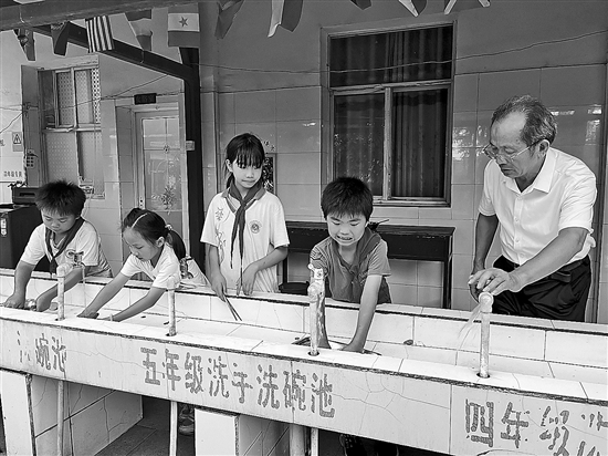 “這里還有一點(diǎn)油痕,用熱水才能洗干凈?!蔽绮徒Y(jié)束,孩子們?cè)谒剡吳逑醋约旱耐肟?,“餐盤(pán)清潔監(jiān)督員”鄭鵬則在一旁認(rèn)真履行自己的“職責(zé)”。