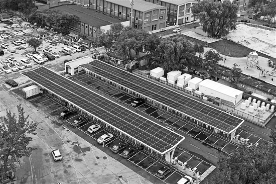 8月19日,中國(guó)石油北京望京南加油站充電站。該站將247.5平方米的有限空間轉(zhuǎn)化為50個(gè)車位,緩解了周邊居民停車難、充電難的問題。