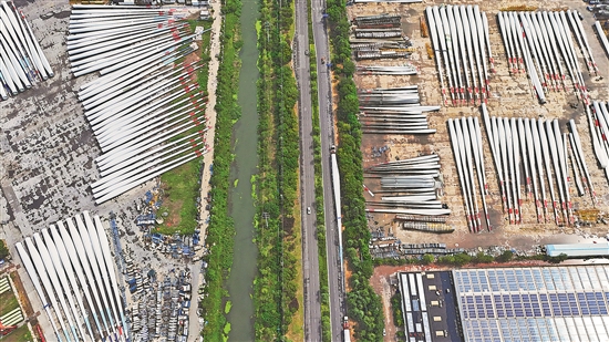 8月27日,江蘇省連云港經(jīng)濟技術開發(fā)區(qū)一家風電設備制造企業(yè),大批風電葉片等待出廠。