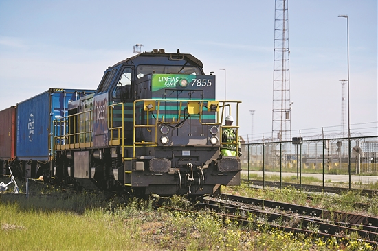 當?shù)貢r間8月25日中午,一列裝載汽車配件和機械配件等貨物的直達鐵路班列從比利時布魯日的澤布呂赫港駛往德國城市曼海姆,標志著這條聯(lián)動西北歐門戶與德國南部工業(yè)腹地的綠色物流走廊正式打通。“澤布呂赫-曼海姆”直達鐵路班列是中遠海運集團發(fā)揮“航運+港口+物流”一體化優(yōu)勢打造的全程供應鏈產品的重要組成部分。圖為當日,首趟“澤布呂赫-曼海姆”直達鐵路班列從比利時布魯日的澤布呂赫港碼頭駛出。新華社記者 呂優(yōu) 攝