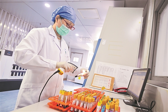 8月26日,在江蘇省東臺市人民醫(yī)院檢驗科,醫(yī)務(wù)人員將鎮(zhèn)衛(wèi)生院送來的標(biāo)本進(jìn)行電子簽收。近年來,東臺市創(chuàng)新體制機(jī)制,將全市2家龍頭醫(yī)院、6個農(nóng)村區(qū)域醫(yī)療中心、18個鎮(zhèn)衛(wèi)生院、341個村衛(wèi)生室(站)組建成緊密型數(shù)字化醫(yī)共體,方便群眾在家門口就醫(yī)看病。 新華社記者 季春鵬 攝