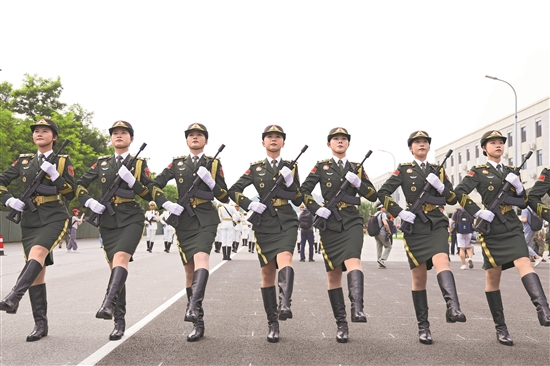 徒步方隊(duì)的博士后女隊(duì)員馬超群,是北部戰(zhàn)區(qū)某醫(yī)院一名內(nèi)科醫(yī)生。作為聯(lián)勤保障部隊(duì)的官兵,她在日常訓(xùn)練中絲毫不敢松懈?!澳軌蛞攒娽t(yī)的身份亮相天安門廣場,向世界展示我們聯(lián)勤軍醫(yī)的形象,是一件無上光榮的事!”馬超群說,參加閱兵訓(xùn)練前,她剛結(jié)完婚,“再完成此次閱兵任務(wù),我的2025年就真的非常圓滿了”。