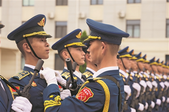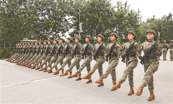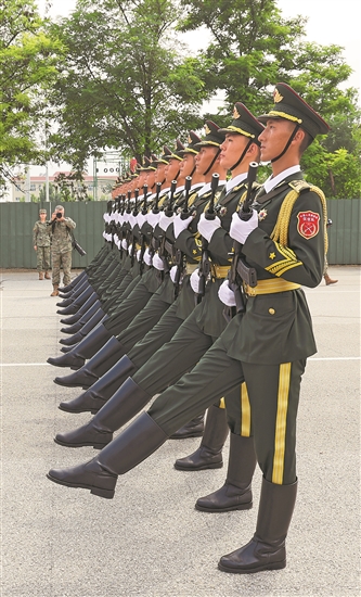 儀仗方隊(duì)官兵正在訓(xùn)練。