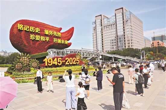 紀(jì)念抗戰(zhàn)勝利80周年主題花壇受注目