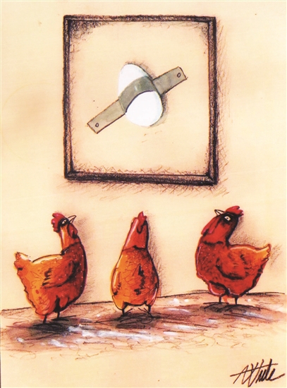 面對(duì)碩大的蛋品標(biāo)本,母雞們喋喋不休地爭(zhēng)功,各自闡述本領(lǐng)之大,貶低別家如此之小。到頭來(lái),弄明白了——那是鵝蛋!