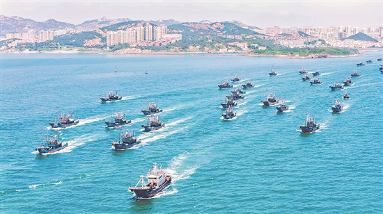 9月1日,山東青島西海岸新區(qū)積米崖漁港迎來“開漁”日,一艘艘漁船揚(yáng)帆起航,駛向碧波萬頃的大海捕撈海鮮。