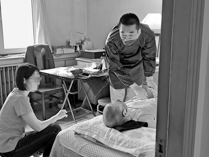 在此背景下,越來越多的家庭對(duì)居家醫(yī)療護(hù)理有了迫切的需求。很多時(shí)候,當(dāng)王震敲開一扇又一扇家門,呈現(xiàn)在他面前的,除了患者身體上情況各異的癥狀,還有疾病帶給一個(gè)家庭的變化以及人們各不相同的與之長(zhǎng)期對(duì)抗、共處的故事。