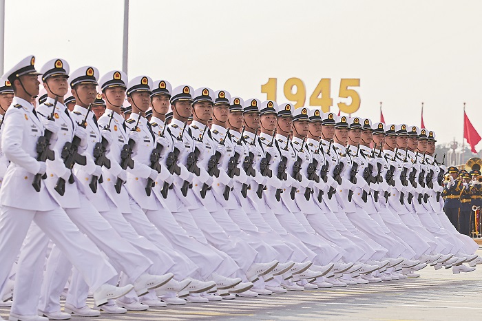海軍方隊(duì)經(jīng)過(guò)北京天安門(mén)廣場(chǎng)。本報(bào)記者 楊登峰 攝