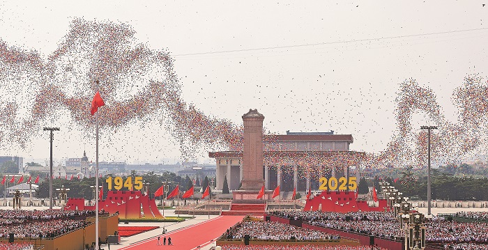 世界的目光看向東方,勝利的旗幟高高飄揚(yáng)。
