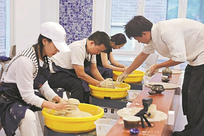 近年來,北京世園國際旅游度假區(qū)持續(xù)激活世園會遺產(chǎn)價值,引入并組織多項文旅活動,打造文旅消費新場景。通過“世園+音樂”“世園+體育”“世園+研學(xué)”等多元業(yè)態(tài)融合,實現(xiàn)從單一展會到綜合性文旅目的地的轉(zhuǎn)型,成為京郊文旅融合發(fā)展重要載體。圖為近日游客正在非遺工坊內(nèi)體驗陶瓷制作技藝。本報記者 王偉偉 攝