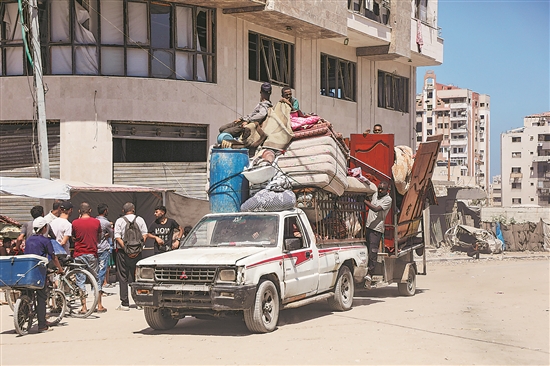以色列國(guó)防軍近日發(fā)表聲明說(shuō),鑒于加沙城地面行動(dòng)的擴(kuò)大及在“基甸戰(zhàn)車(chē)2”行動(dòng)中對(duì)巴勒斯坦伊斯蘭抵抗運(yùn)動(dòng)(哈馬斯)據(jù)點(diǎn)的占領(lǐng),以軍在加沙南部汗尤尼斯地區(qū)設(shè)立人道主義援助區(qū)。圖為近日,巴勒斯坦人攜帶家當(dāng)逃離加沙城。新華社發(fā) (里澤克·阿卜杜勒賈瓦德 攝)