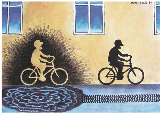 漫畫家張生博先生的作品《路遇》,用令人啼笑皆非的喜劇語言,詮釋了幾乎人人都可能遭遇的“可遇不可求”。而從“后果”上看,如此“路遇”,堪稱難得一遇。這樣的“跡象”一旦被我們的目光撞到,就會(huì)進(jìn)入我們大腦,形成深刻印象。