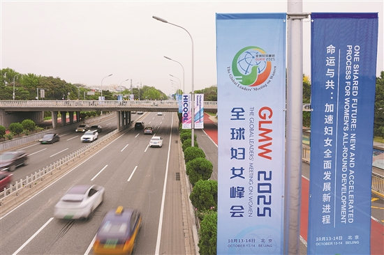 圖為10月12日在北京街頭拍攝的全球婦女峰會道旗。