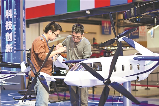 10月14日,工作人員在天津直博會(huì)直升機(jī)館內(nèi)布展。