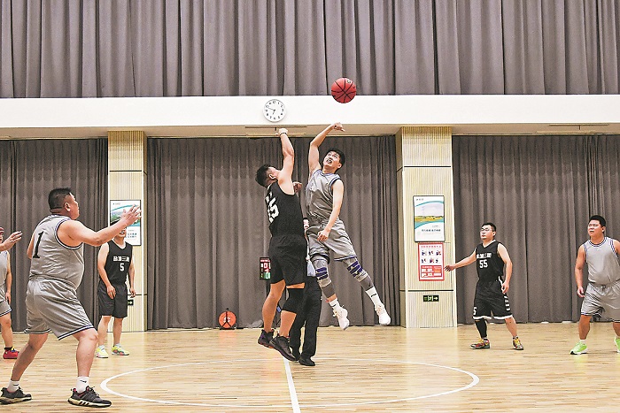 近日,國網(wǎng)鹽城供電公司舉辦了第九屆職工運動會籃球比賽。比賽分為預賽和排名賽兩個階段,來自公司本部、各區(qū)縣公司的9支代表隊124名職工齊聚賽場參與角逐,展示了職工風采。圖為職工籃球賽現(xiàn)場開賽跳球。